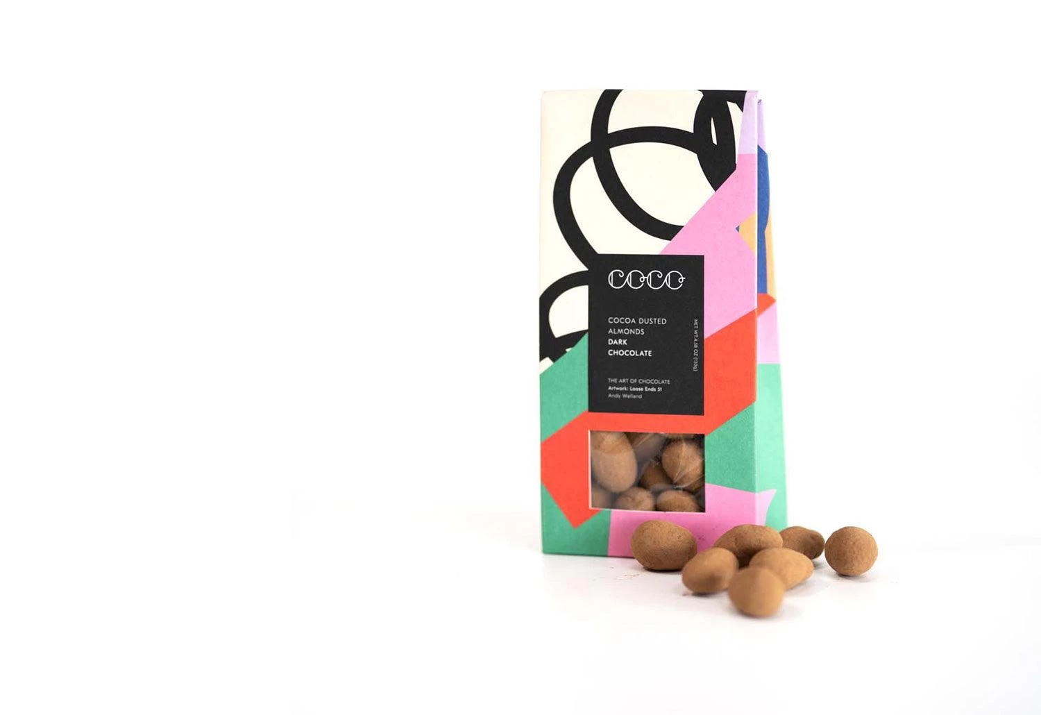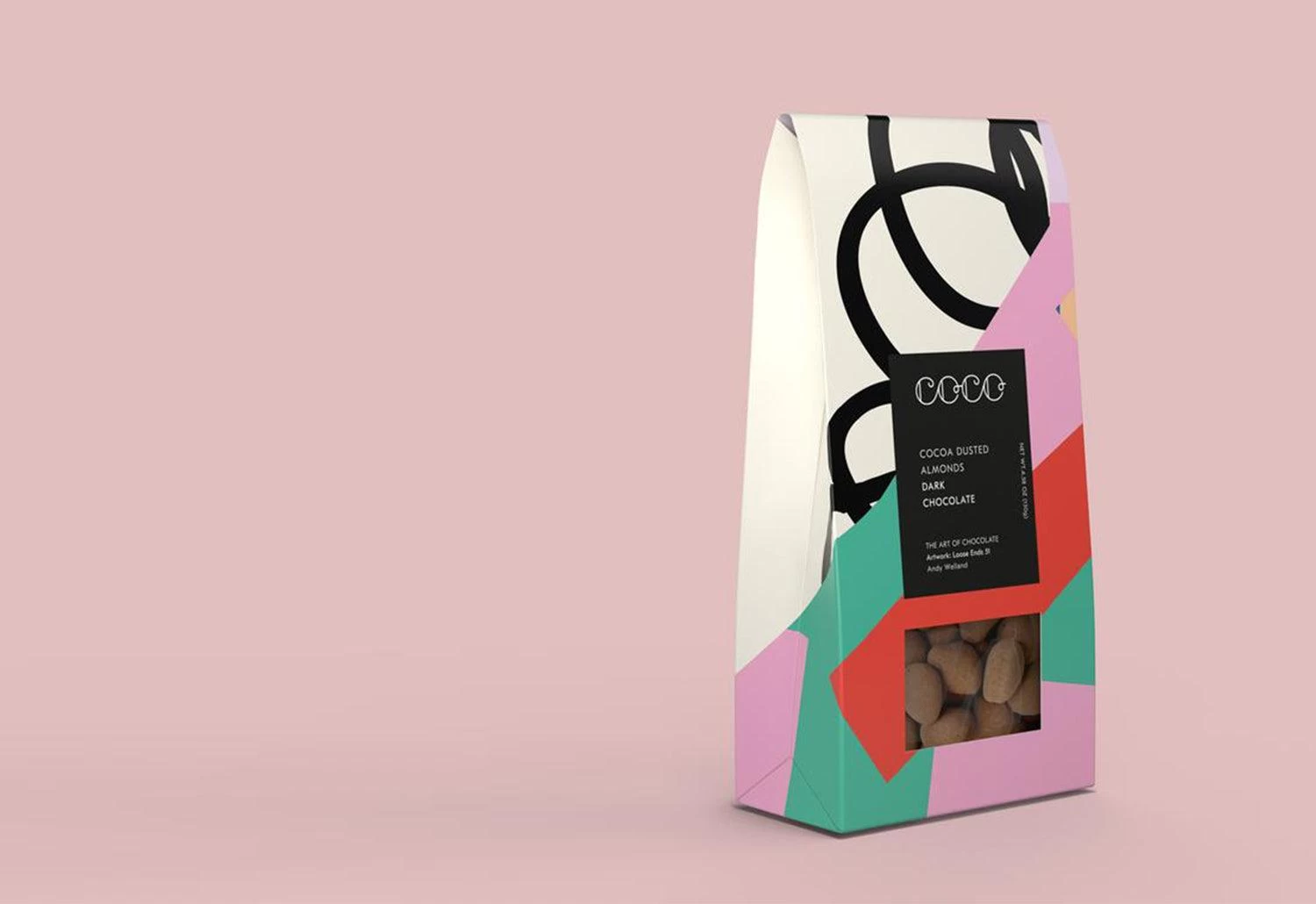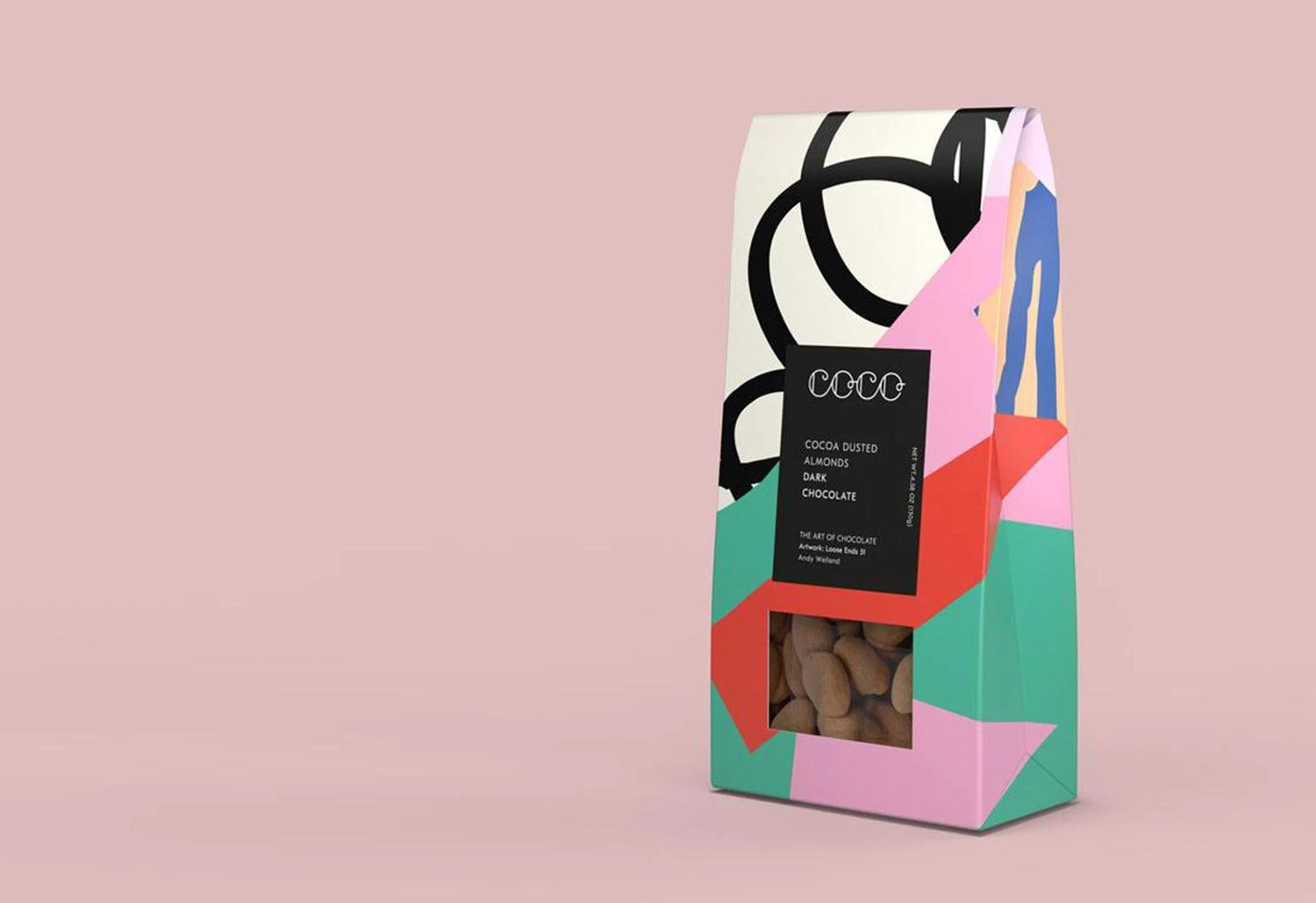 The treat is wrapped in a sophisticated print designed by Andy Welland. Andy Welland is a British artist and an art director known for his bold and vibrant graphic collages.