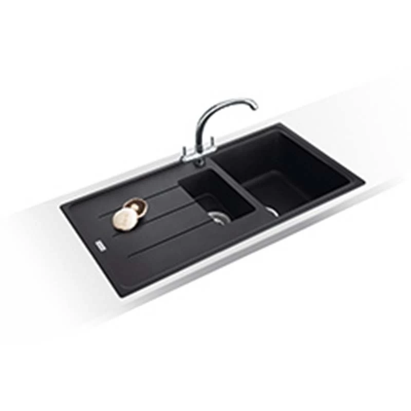 Finish your kitchen with the Franke Basis BFG 651 Reversible 1.5 Bowl Inset Kitchen Sink in Onyx Black. Manufactured from Fragranite, a combination of 80% quartz sand and 20% very hard acrylic resin which ensures durability and versatility, the sink will make a statement in any kitchen with its subtle shine and and practical benefits.