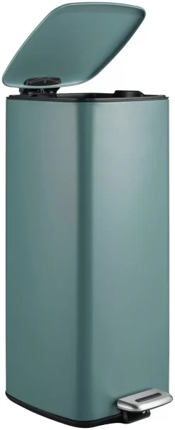 Step on it. Here's an easy way to keep things tidy. Our sleek square bin is the way to go with its stylish teal body and stainless steel pedal. The removable inner bucket is designed to make cleaning and washing a simple task. And the soft close slim-line lid is bliss for discreet late-night snackers. Shh, we won't tell.