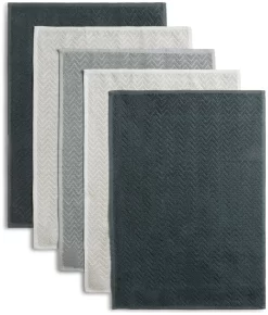 How useful is this set of 5 thick cotton tea towels? Answer, very. Made from terry toweling and in subtle muted colours, they feature a smart debossed zig zig design.
